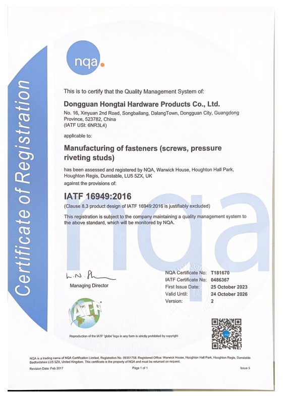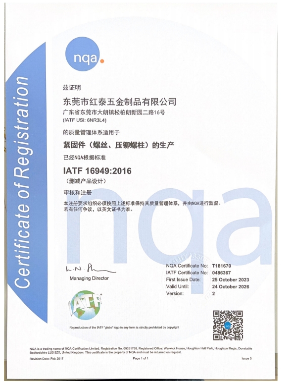 東莞市紅泰五金制品有限公司,公司占地六千多平方米,擁有五十多組螺絲機(jī)及六十臺自動(dòng)車床設(shè)備。是一家專業(yè)設(shè)計(jì)、生產(chǎn)ISO、DIN、GB、JIS、ANSI、BS及客戶指定特殊要求的高精密五金緊固件的制造企業(yè)。